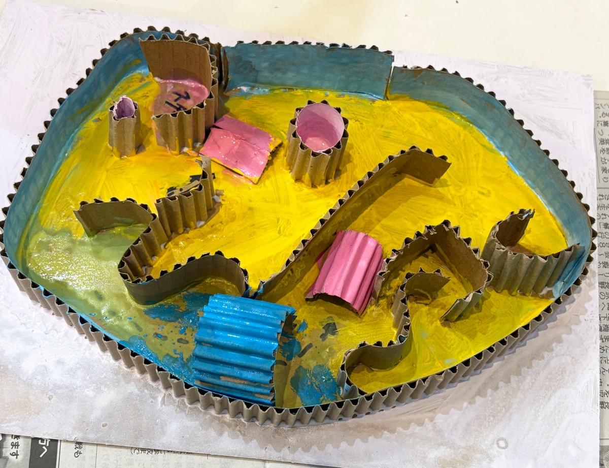身の回りにある素材を使って、課題の目的にあった物を作って行きます。素材の扱い方、作り上げて行く手順を身に付け、考える力が育ちます。1〜3までの課題のまとめが「工作」です。