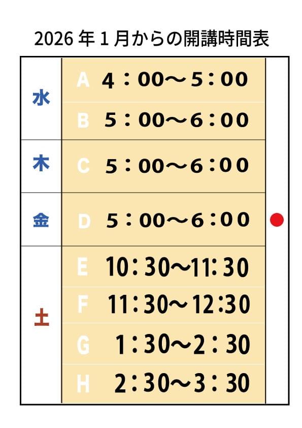 同じ色の水曜〜土曜のクラスは同一課題です。
