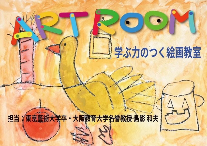 図画・工作は一人ひとりの子どもの個性・独創性を大切にする教科です。アートルームは、大阪教育大学名誉教授(東京藝術大学美術学部卒)島影和夫が毎回異なった課題を作成し4才から6年生までが「たてわりクラス」で学ぶ絵画教室です。様々な造形活動を通して自ら積極的に考え、秩序立てて完成させて行く力をつけます。年齢・経験の異なった子どもたちの絵や工作を比べたり、賞を取るために展覧会等に出品することもありません。図画・工作から他の教科へ関連を付けて学びます