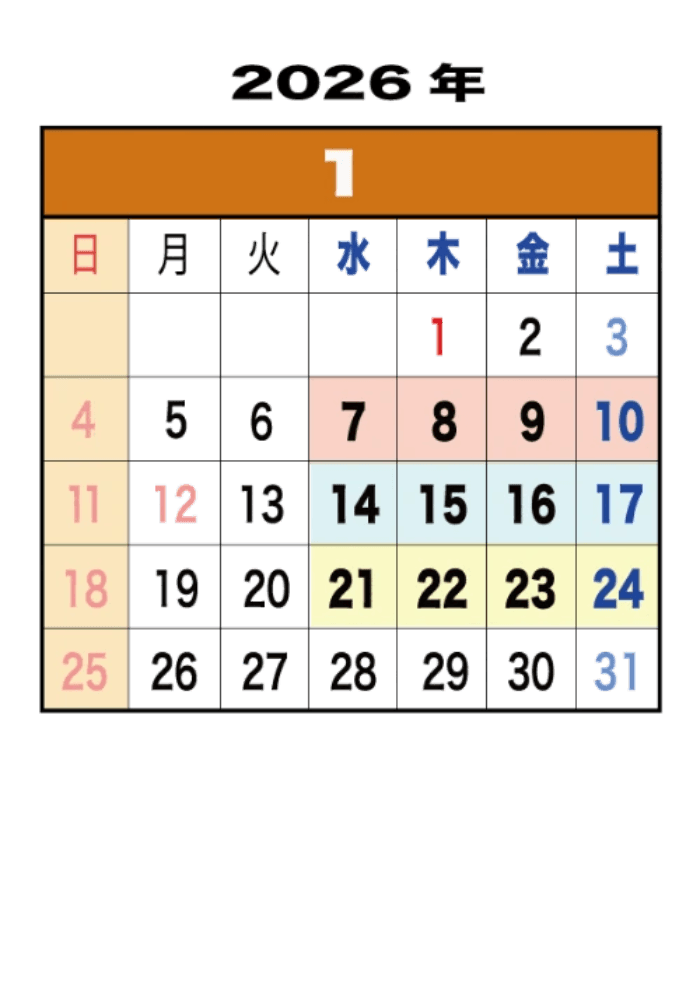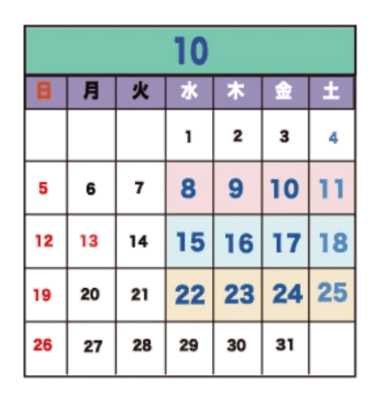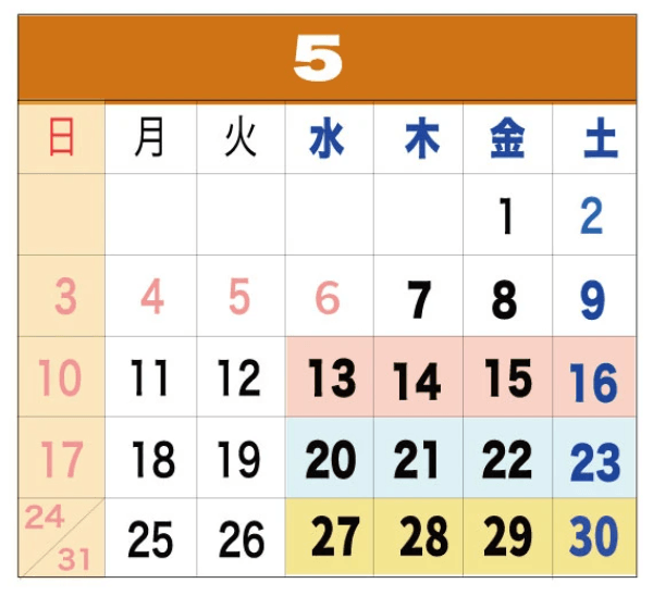 同じ色の水曜〜土曜のクラスは同一課題です。