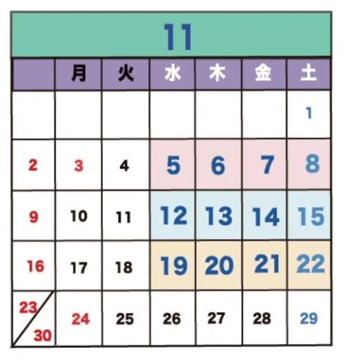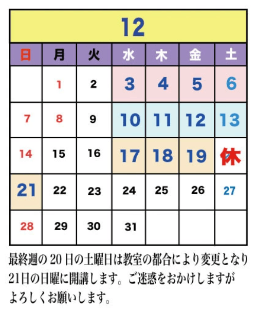 12月3週目20日土曜日は21日の日曜に開講日が変更になります。
