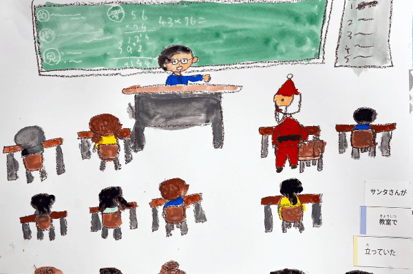 ことばの組み合わせを変えて不思議なサンタさんの絵を描きました