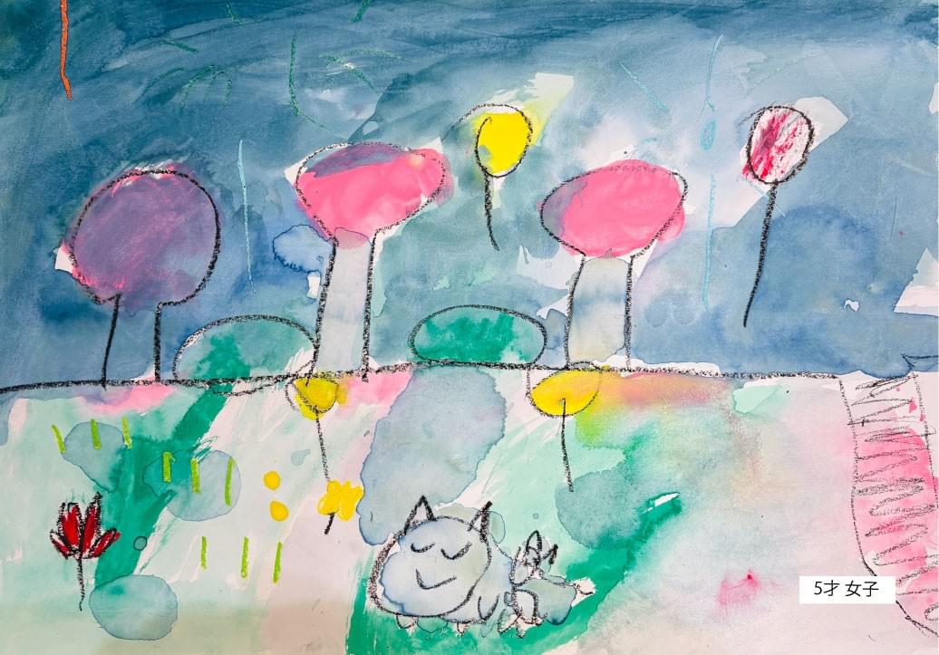 お話や言葉、見て描く絵に自分のイメージをプラスして絵を描きます。創造する力を拡げる課題です。他の人の真似をすることなく「独自性」を大切にします。